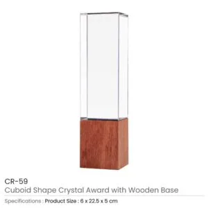 Cuboid Shaped Crystal Awards with Wooden Base