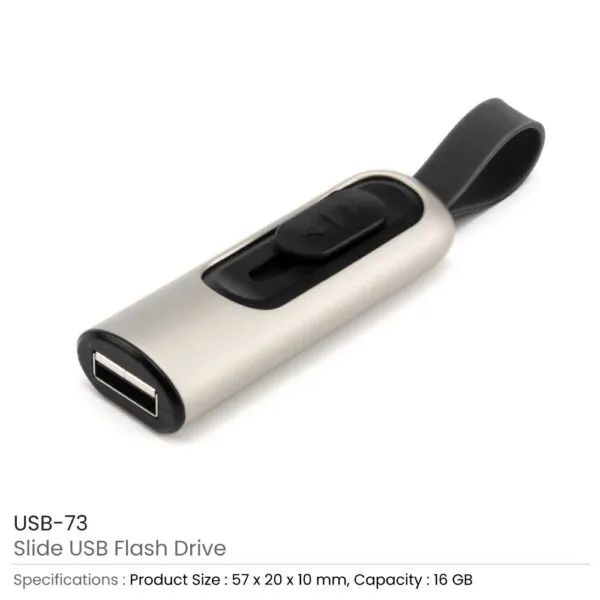 The slide button USB flash 16GB has a matte silver color, a smooth matte surface, and a silicone strap for grasping. The USB’s side-mounted sliding slider is utilized to slide the USB port in and out of the slick enclosure. The color silver is available for this Slide USB. The memory capacity reaches 16GB. This casing’s excellent mechanical strength features a dependable, power-saving design. It simply has three parts, but they fit together quickly, securely, and without glue.